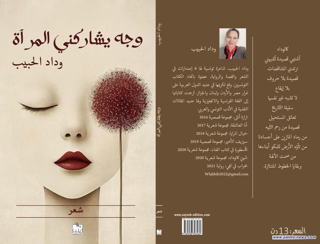 في حديث خاص "لوكالة نخيل عراقي" أعلنت الأديبة التونسية وداد رضا الحبيب عن صدور مجموعتها الشعرية الخامسة، والتي حملت عنوان ( وجه يشاركني المرآة )، عن دار زينب للطباعة والنشر والتوزيع في تونس، بواقع 82 صفحة، وهو يعتبر إصدارها الثامن، وضمت مجموعةكبيرة من قصائد النثر الحديثة.