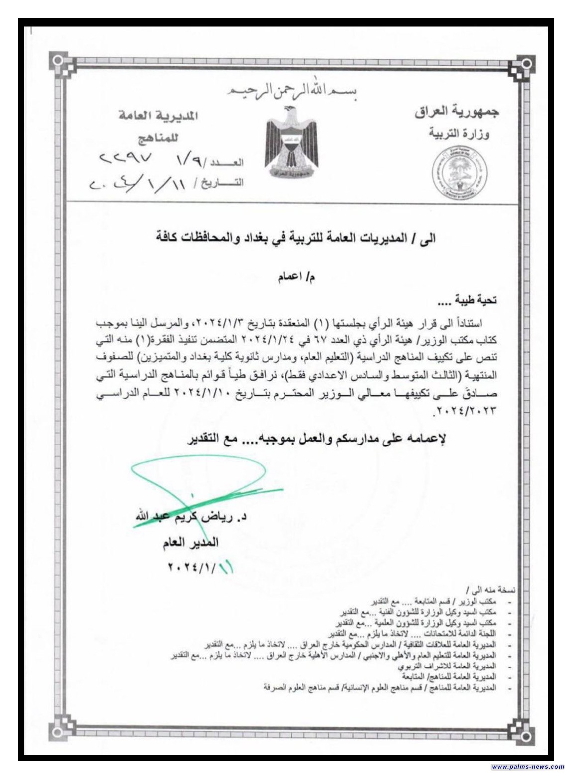 وزارة التربية تُعلن المناهج الدراسية التي تم تكييفها على وفق قرار هيأة الرأي للصف الثالث المتوسط والسادس الاعدادي بفروعه كافة، بعد تشكيل لجان فنية مختصة تولت النظر بالمواد المكيفة، للعام الدراسي ٢٠٢٣_٢٠٢٤ …