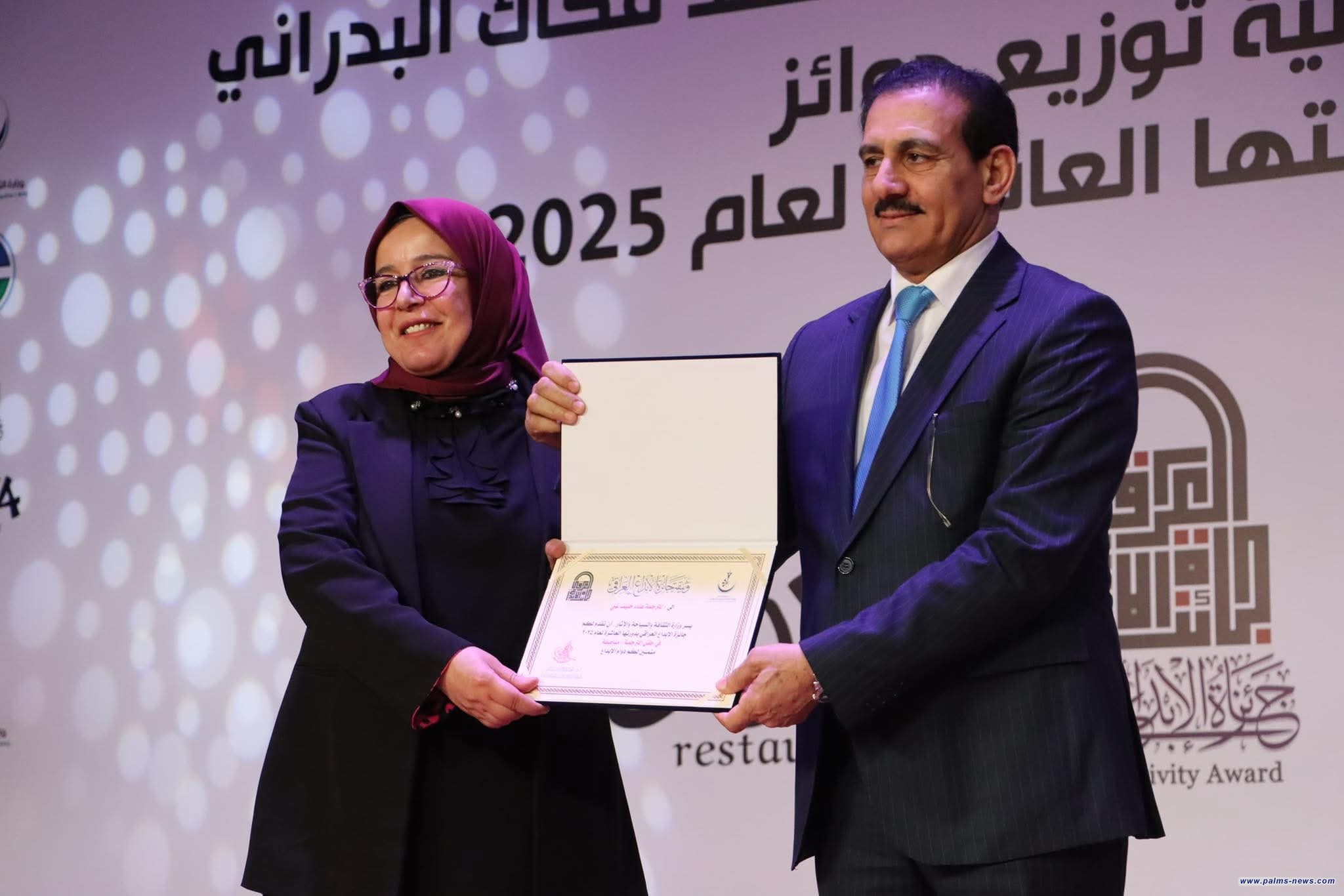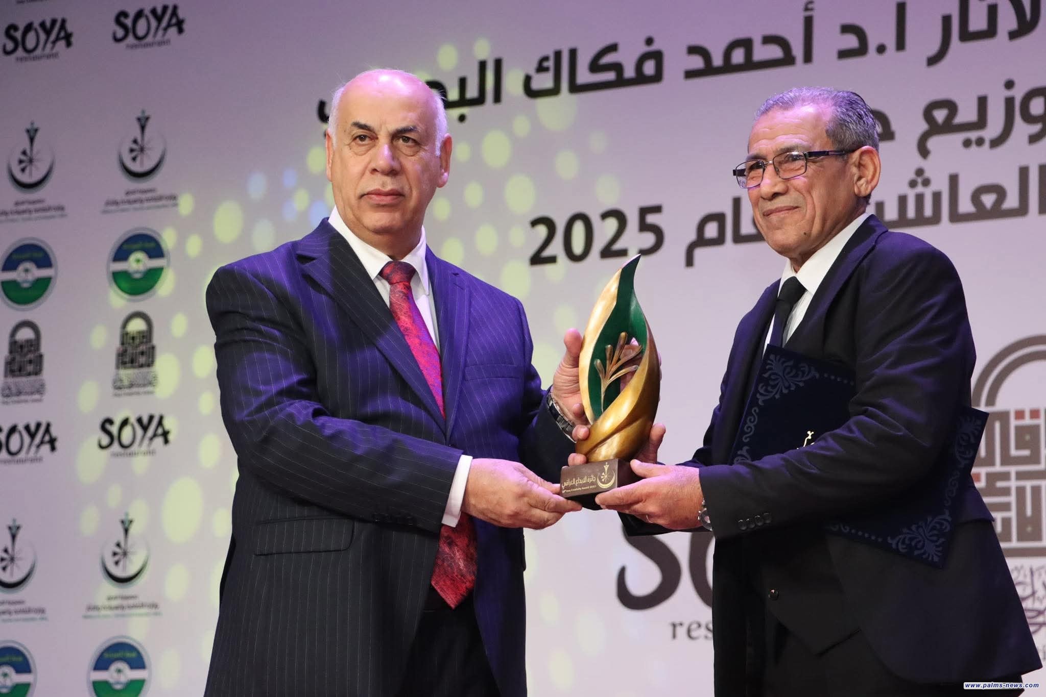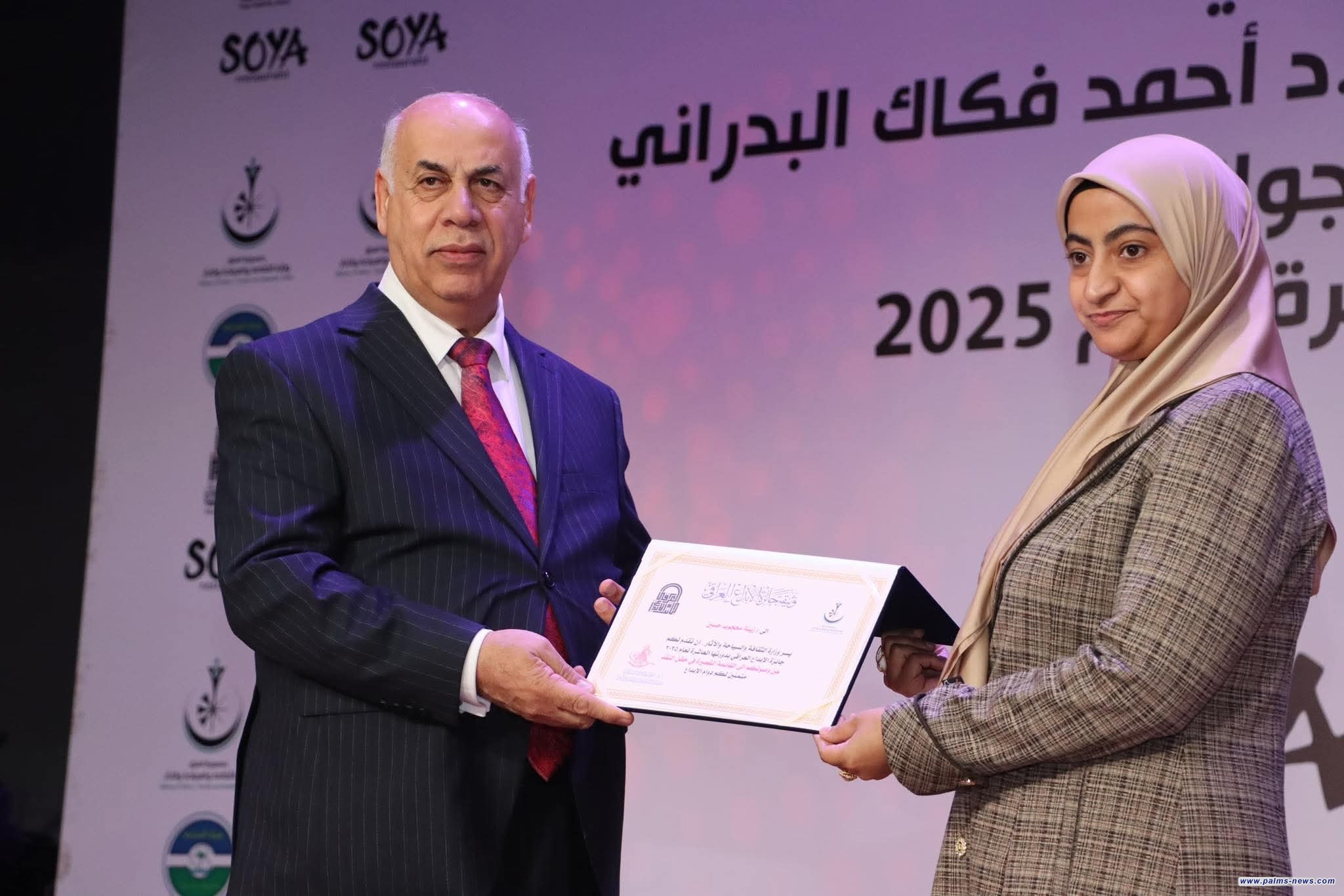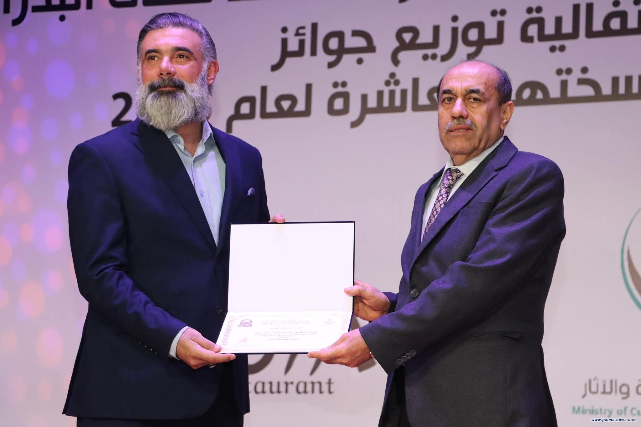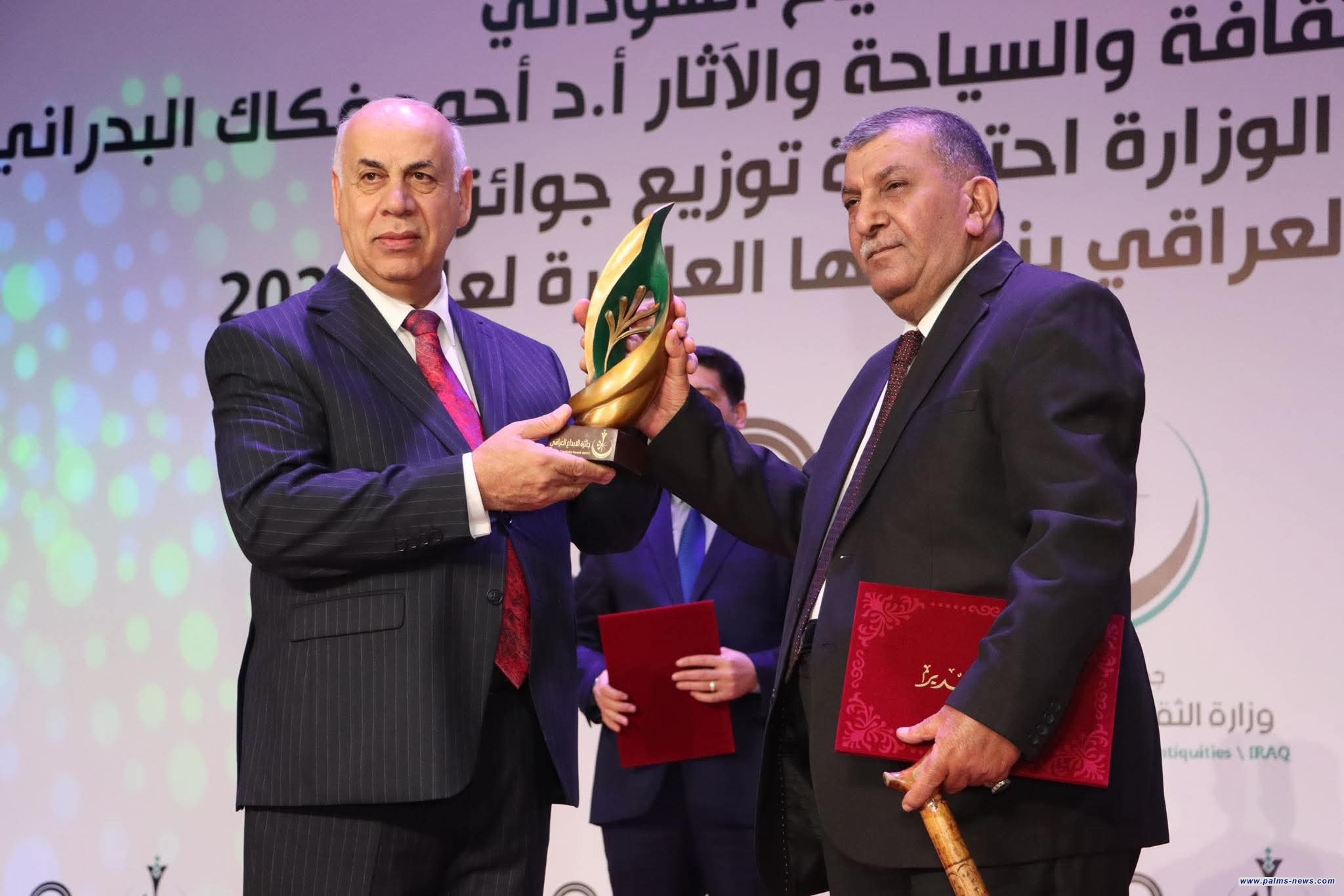 و حصد عامر عبد الله نجم المركز الأول في الدراسات الآثارية والسياحية عن (معجم البلدان في النصوص المسمارية)، ومحمد عبد الأمير الشمري في السينما عن( الكمال الأحمر)، وسنان العزاوي في المسرح عن عمله ( الجدار) ، وخليفة محمود إخليف في الرسم عن (الزيارة)، وثائر حسين علي في النحت عن (عشتار إله الحب والحرب)، إضافة إلى تكريم نور باسم من ذوي الاحتياجات الخاصة عن عملها (شناشيل بغدادية) ، وشهد الحفل اختيار فاضل ثامر افضل شخصية إبداعية في مجال الأدب، ومزاحم عباس في مجال الآثار لعام 2025.