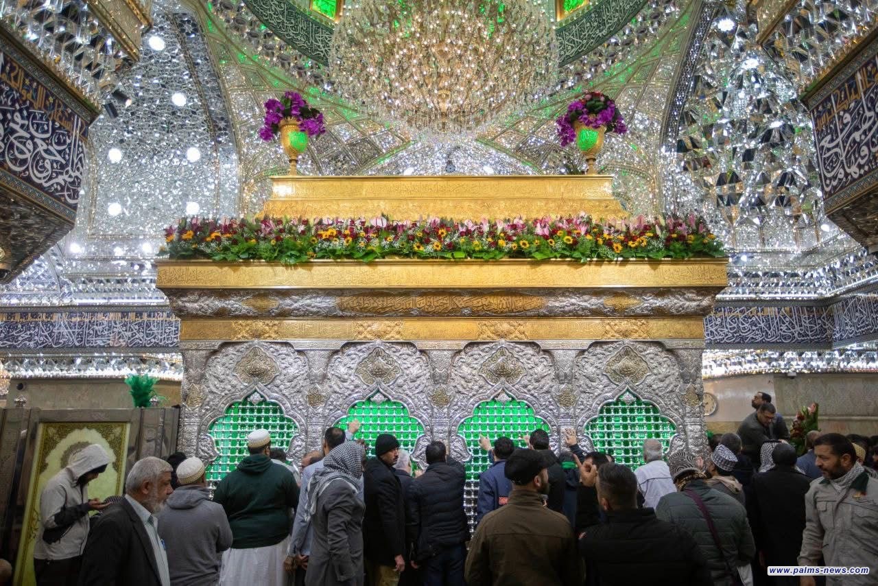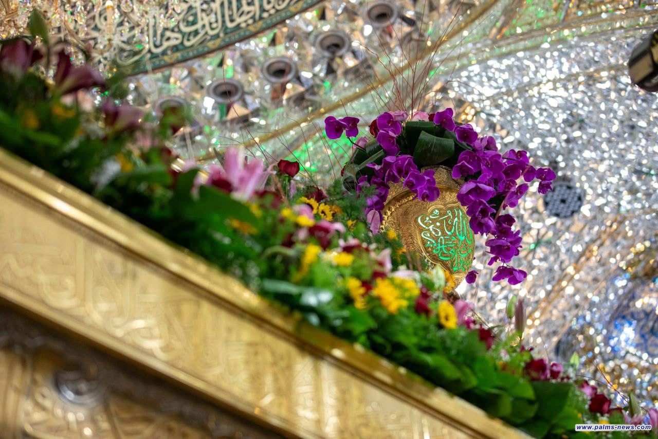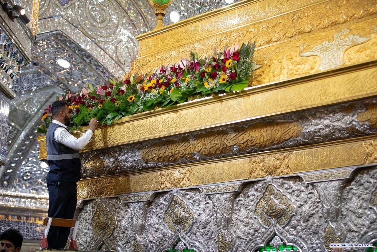 وضع أكاليل الورد وتزيين ضريح الإمام الحسين (ع)تزامناً مع ذكرى ولادة الإمام علي(ع).