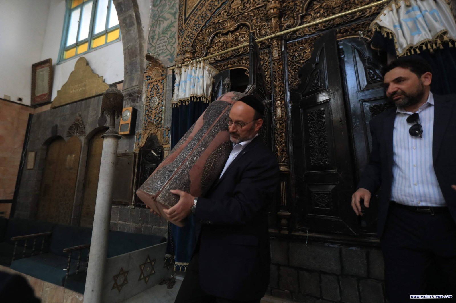 أدى وفد من اليهود السوريين المقيمين في الولايات المتحدة، الصلاة في «كنيس الإفرنج» في دمشق القديمة، اليوم، وفق مصوِّر في «وكالة الصحافة الفرنسية»، في إطار سلسلة زيارات تشهدها العاصمة السورية منذ إطاحة حكم بشار الأسد.