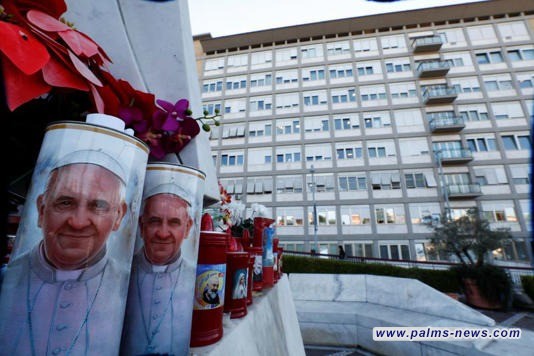 ويتلقى البابا فرنسيس العلاج داخل مستشفى "جيميلي" في روما، ودخل المستشفى خلال الـ14 من فبراير (شباط) الجاري بعد أن عانى صعوبات في التنفس لأيام عدة.