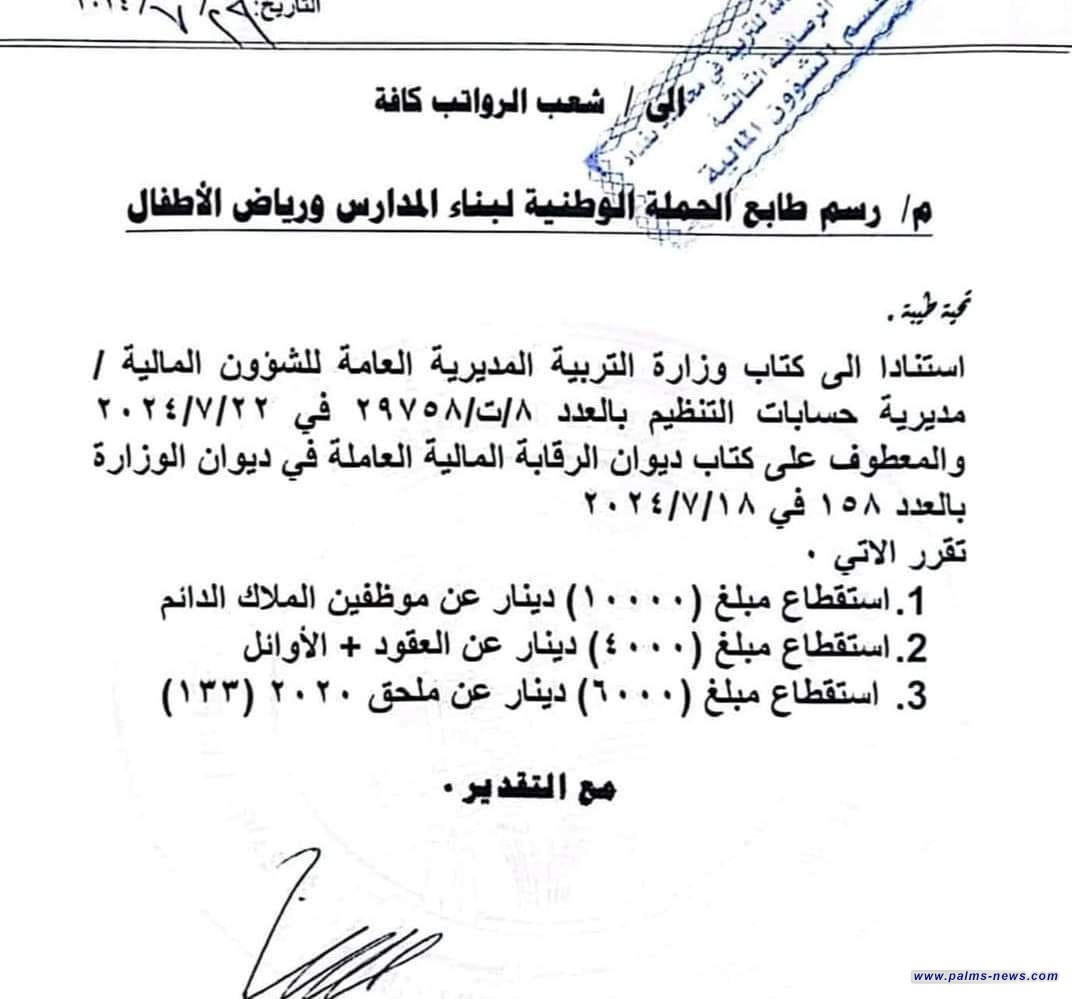 وبحسب الوثيقتين، فإن مديريات التربية في بغداد والمحافظات، باشرت بقطع هذه المبالغ من الكوادر التدريسية.