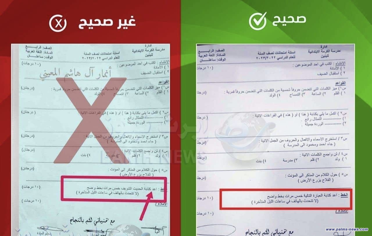 نفت وزارة التربية، اليوم الأربعاء، ورود حديث نبوي “غير صحيح” في اسئلة الامتحانات، مشيرة إلى أن نسخة الأسئلة المنشورة مُزورة وفيها تحريف واضح.