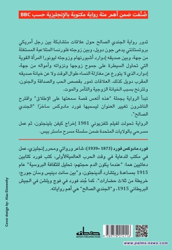 عن دار صفصافة للنشر و التوزيع في القاهرة صدرت حديثًا الرواية الشهيرة "الجندي الصالح" The Good Soldier، للكاتب الإنجليزي فورد مادوكس فورد بترجمة إسلام نبيل منسي.