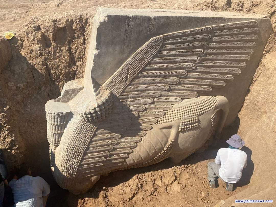 الهيئة العامة للآثار والتراث تكشف عن استظهار ثور مجنح يعود إلى العصر الآشوري