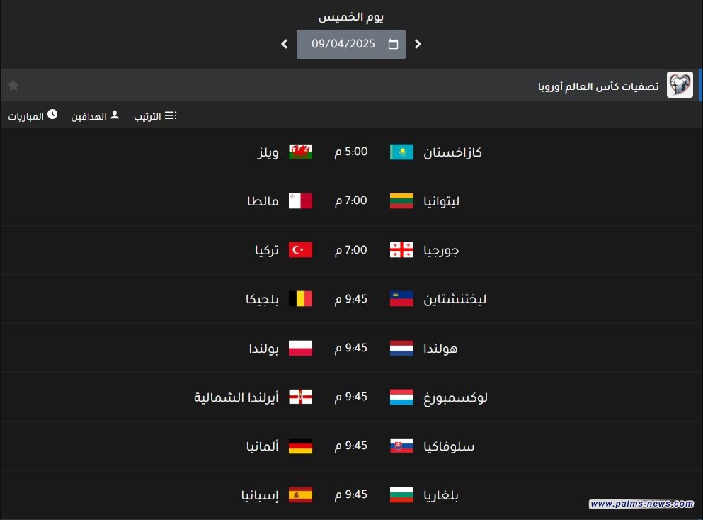 تقام مساء اليوم الخميس ثماني مباريات ضمن التصفيات الأوروبية المؤهلة إلى كأس العالم 2026.