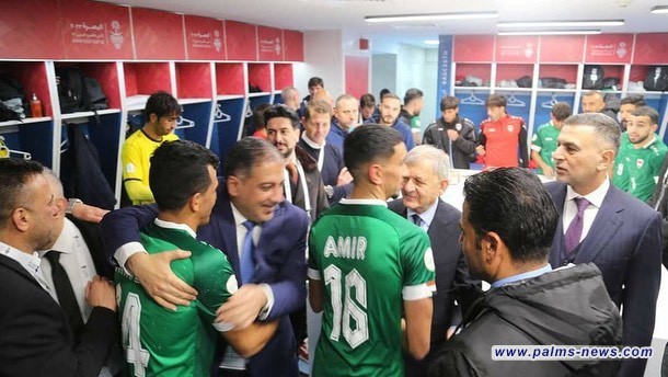 وهنأ الرئيس العراقي المنتخب الوطني وشعبنا العراقي بالفوز على منتخب اليمن وتأهله أولاً على مجموعته إلى نصف نهائي البطولة، بعد تواجده في الجناح الخاص بالمنتخب العراقي وبحضور محافظ البصرة ووزير الشباب والرياضة وأعضاء المكتب التنفيذي لاتحاد الكرة العراقي، والمدرب كاساس وجميع اللاعبين.