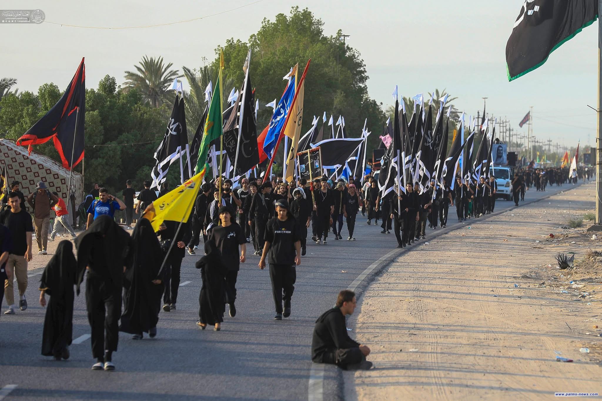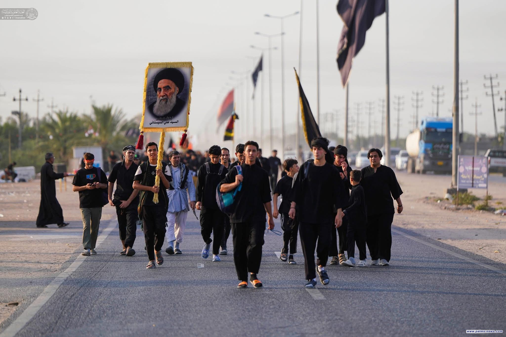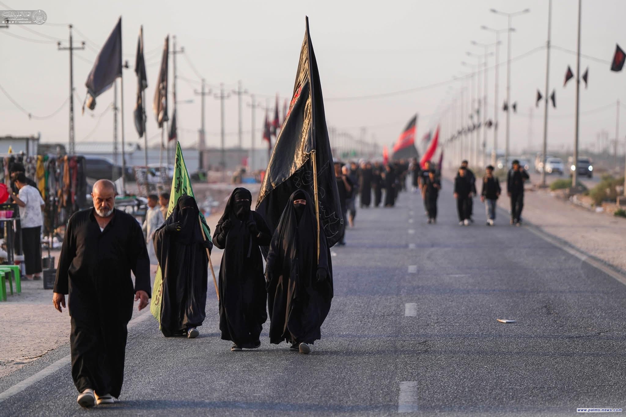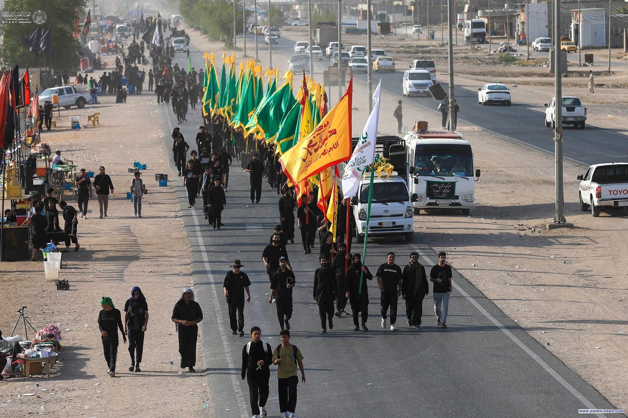 زوار أربعينية الإمام الحسين "ع" يواصلون السير مشياً على الأقدام باتجاه مدينة كربلاء المقدسة.