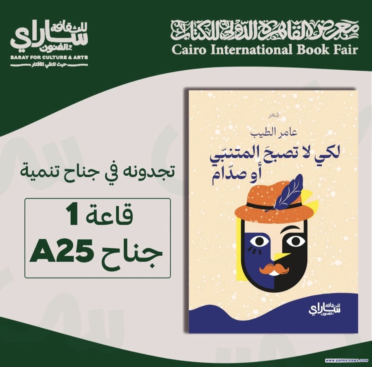 يصدر للشاعر العراقي عامر الطيب كتاب جديد بعنوان (لكي لا تصبح المتنبي أو صدام) ضمن مؤسسة ساراي الثقافية وهو الكتاب الذي سيشارك في معرض القاهرة الدولي للكتاب.