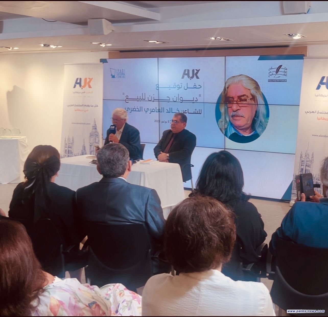احتضنت العاصمة البريطانية لندن حفلاً لتوقيع كتاب ديوان "حزن للبيع" للشاعر العراقي خالد العامري الخضري، والذي أقيم بالتعاون بين ملتقى الشعر الشعبي ومنصة عرب بريطانيا، بحضور نخبة من المثقفين والشعراء والكتّاب العرب.