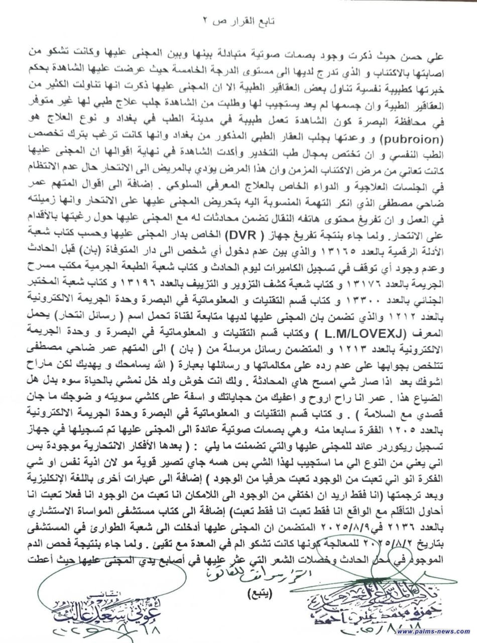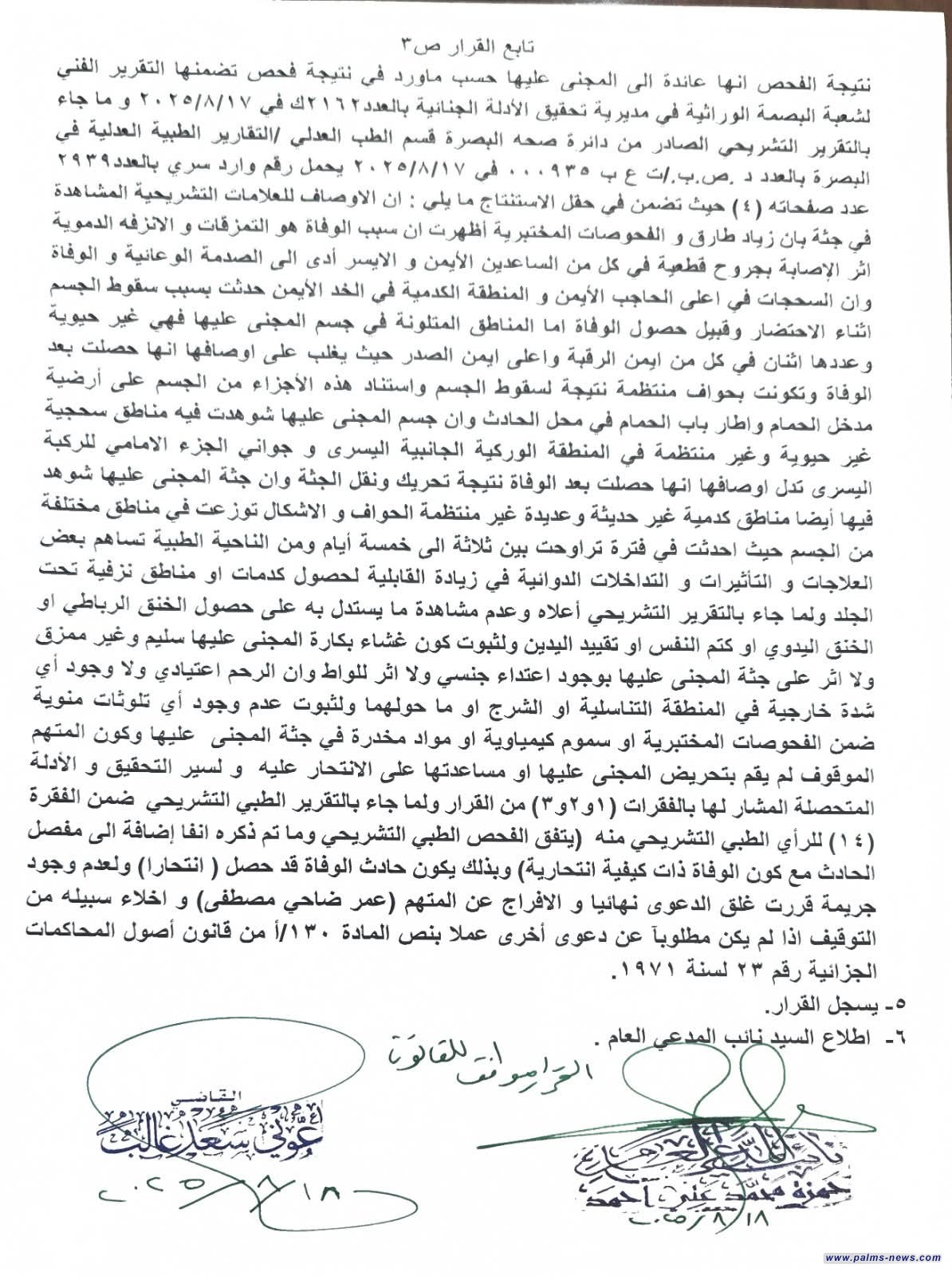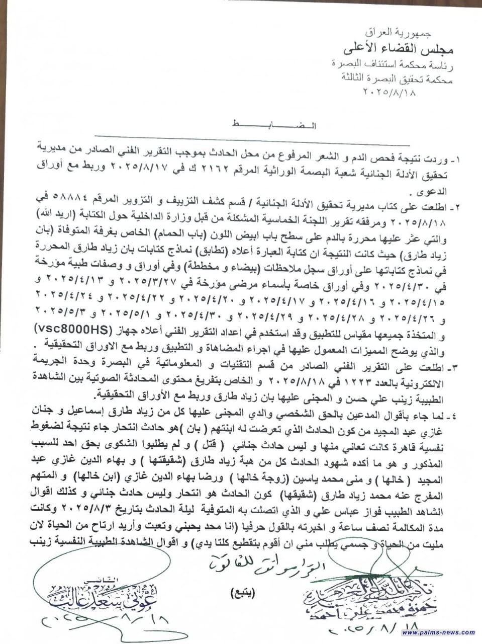 مجلس القضاء الأعلى: التقرير الخاص بوفاة الطبيبة بان زياد يتضح بأن الحادث انتحار لذا تم غلق التحقيق