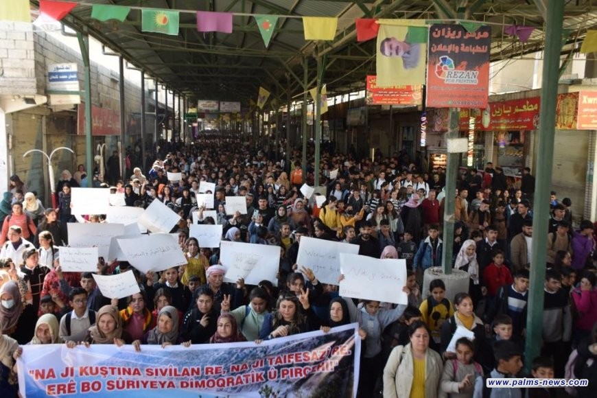 خرج المئات من أهالي مقاطعة الفرات، بينهم عضوات وأعضاء مؤسسات الإدارة الذاتية وطلبة المقاطعة في مدينة كوباني الأمس ، في مسيرة حاشدة، تنديداً بالمجازر التي ارتُكبت بحق المدنيين في الساحل السوري.