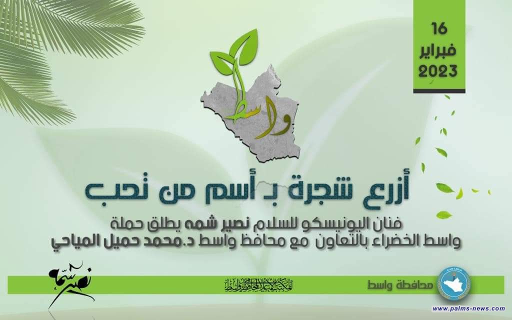 اطلق الموسيقار العالمي، الرئيس الفخري لمنظمة نخيل عراقي الثقافية، نصير شمه، اليوم الأحد التاسع عشر من شباط، عن حملة واسط الخضراء والتي حملت عنوان،